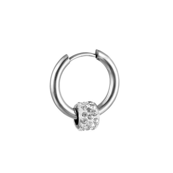 Women Silver Hoop Earrings with Crystal Beads – Unisex Design